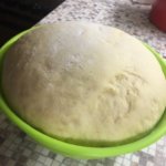- A duplájára nőtt tésztát lisztezett felületre borítjuk- és kb. ujjnyi vastagra nyújtjuk.